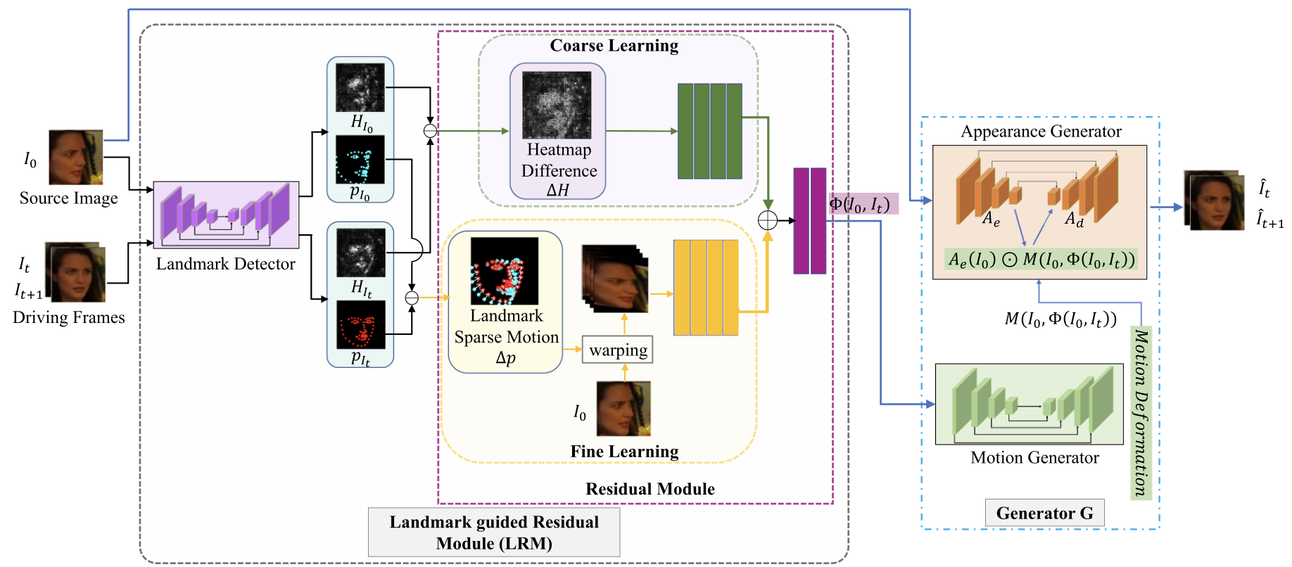 Facial Expression Animation by Landmark Guided Residual Module