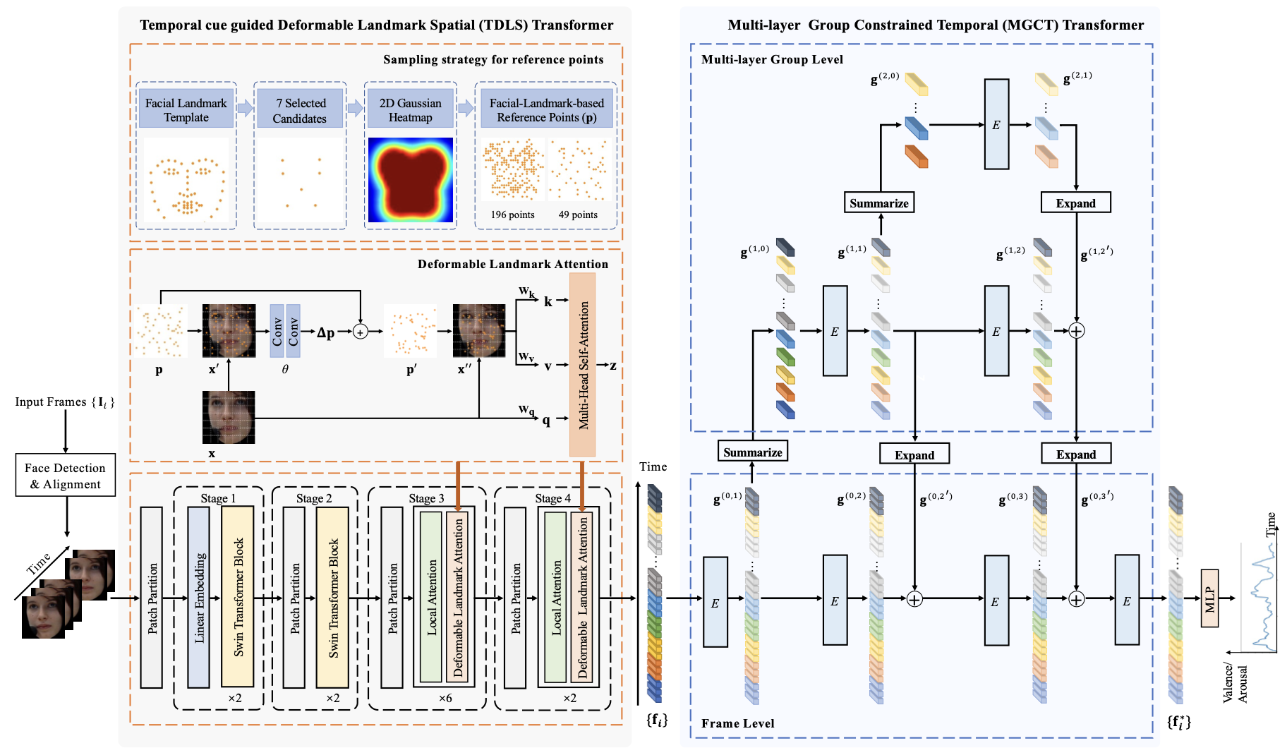Temporal Group Constrained Transformer with Deformable Landmark Attention for Video Dimensional Emotion Recognition