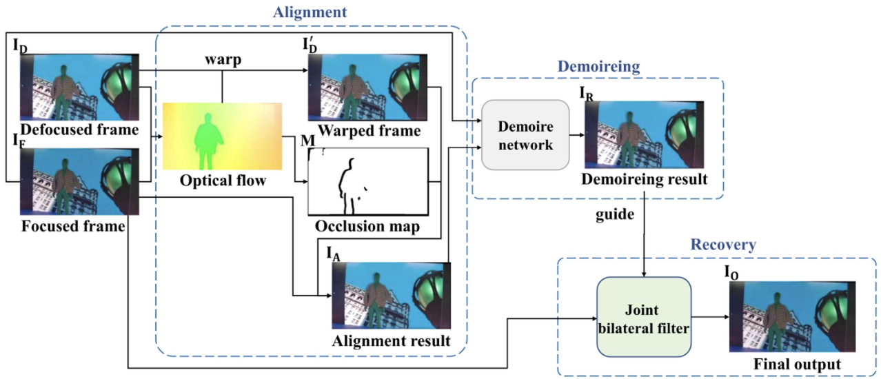 Video Demoireing Using Focused-Defocused Dual-Camera System